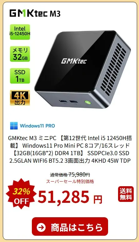 - 商品ページ:https://item.rakuten.co.jp/gmktecdirect/m3-32-1tb/