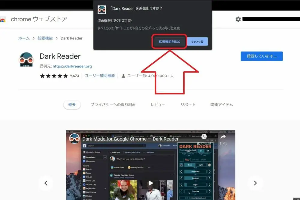 Dark Readerを拡張機能に追加