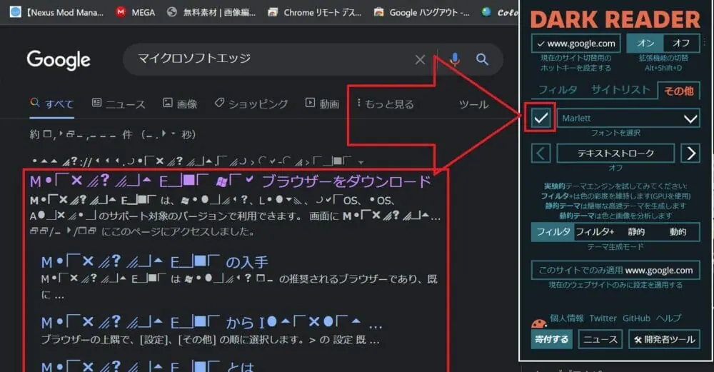 『Dark Reader』の機能の無効化