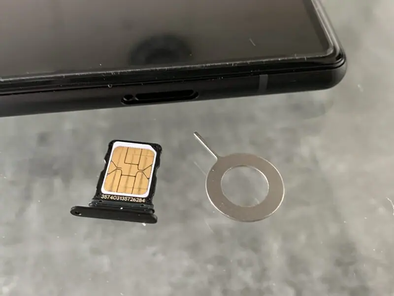 ▼付属のピンを用いてスロットを開き、デュアルSIMの挿入が可能だ(マイクロSDカードには非対応)