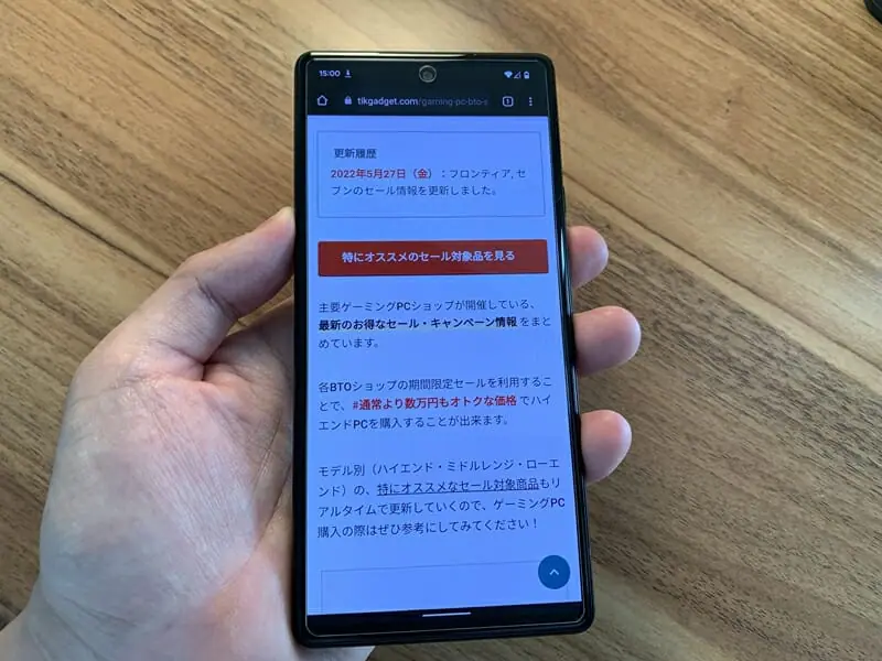 ▼ウェブサイト閲覧時も、細かい文字まで明瞭に表示され見やすい。ページスクロールもなめらかで心地よい。