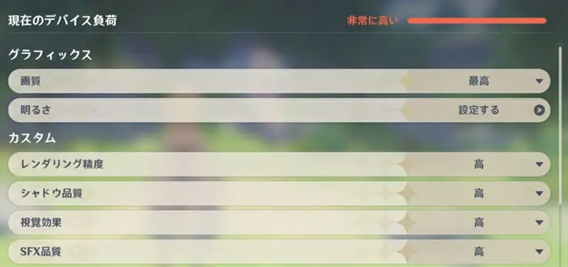 ▼画質設定を "高" に設定した場合、デバイス負荷は "非常に高い" となるが、ゲーム自体は比較的スムーズに遊ぶことが可能であった。