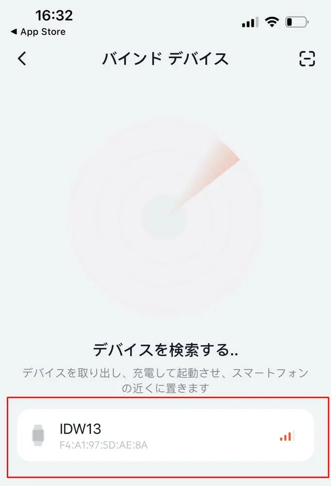 ▼アプリ上にスマートウォッチが表示されるので、選択して接続(ペアリング)を行おう。