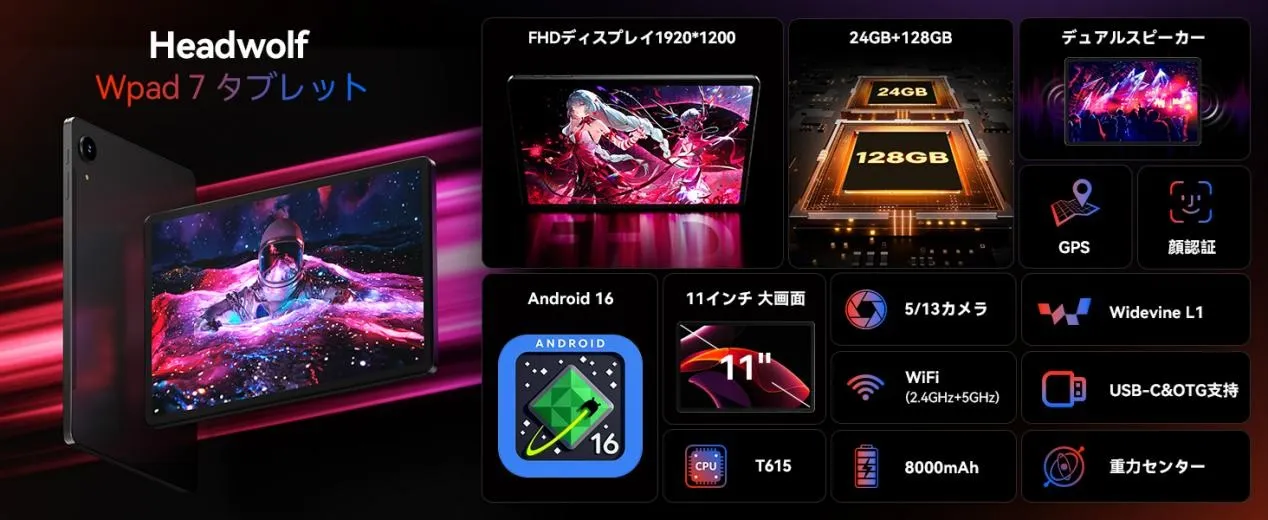 『Headwolf WPad7』は、11インチのAndroid 16タブレットです。