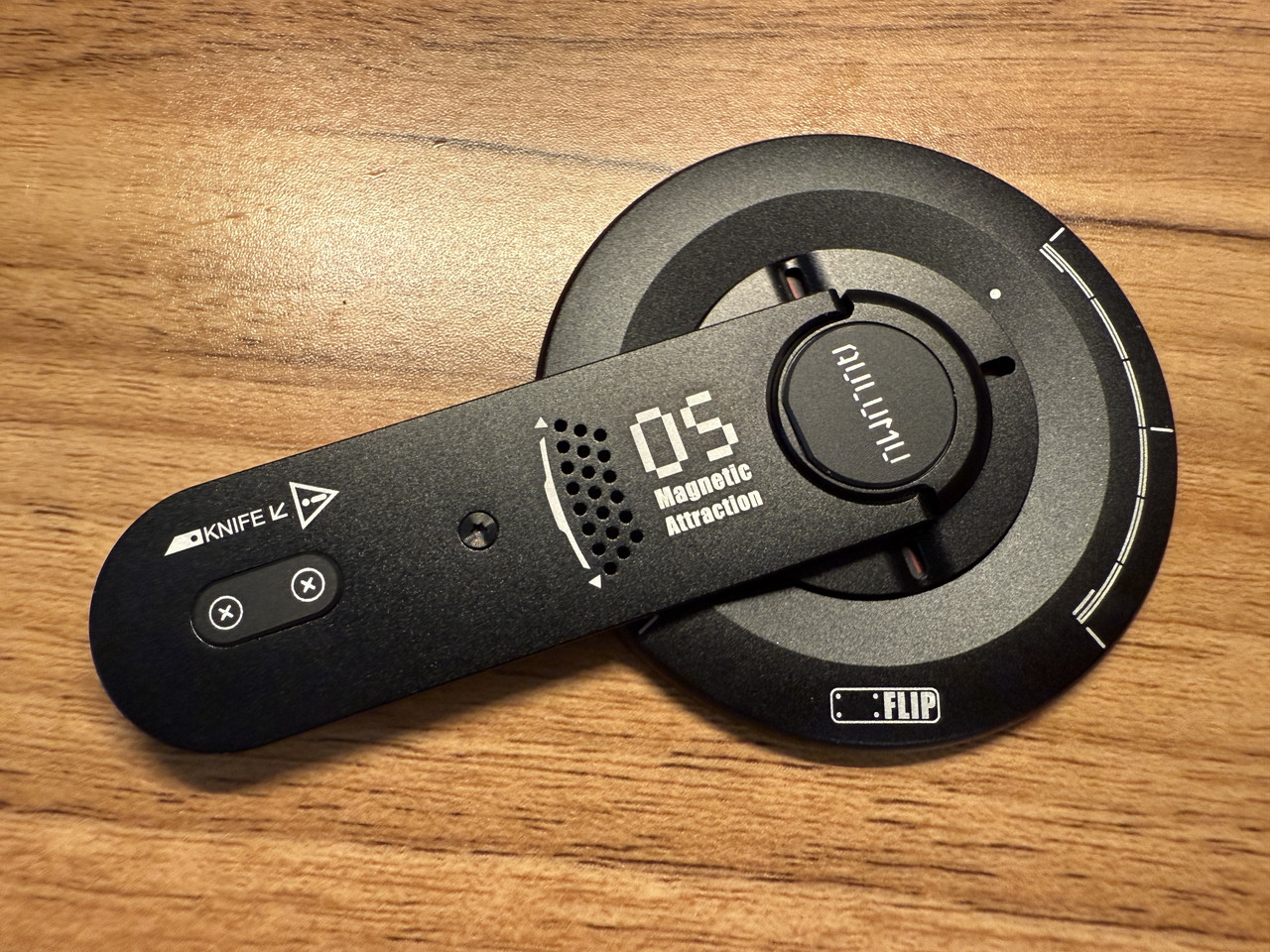 強力なマグネットによる強力な固定、360°回転&90°折りたたみ機構による自由度の高い使い勝手、そしてメカニカルなデザインとクリック感は、ガジェット好きの所有欲を満たしてくれます。