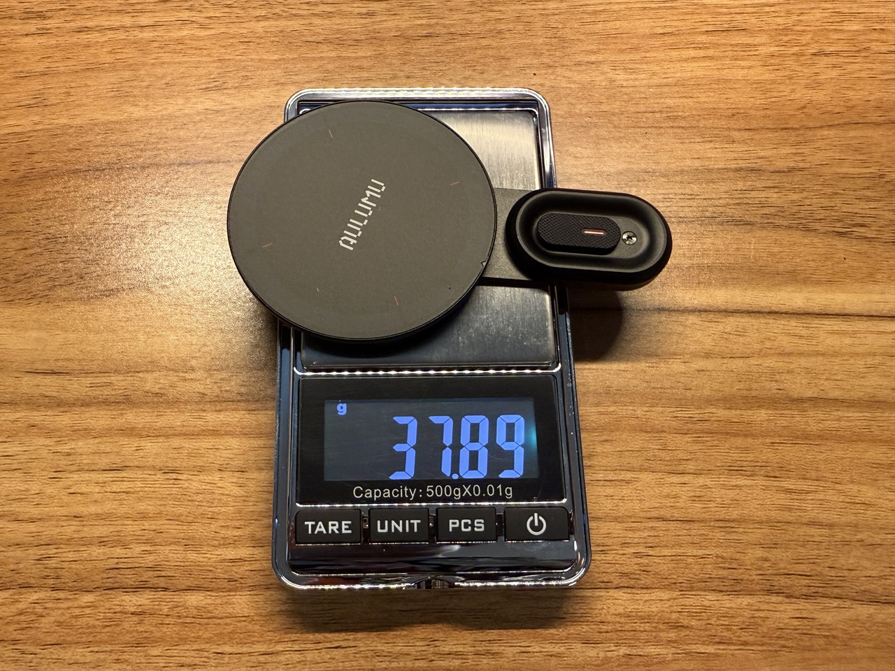 本体重量はわずか約38gと非常に軽量。スマホに装着しても重さはほとんど変わらず、携行性を損ねることはありません。