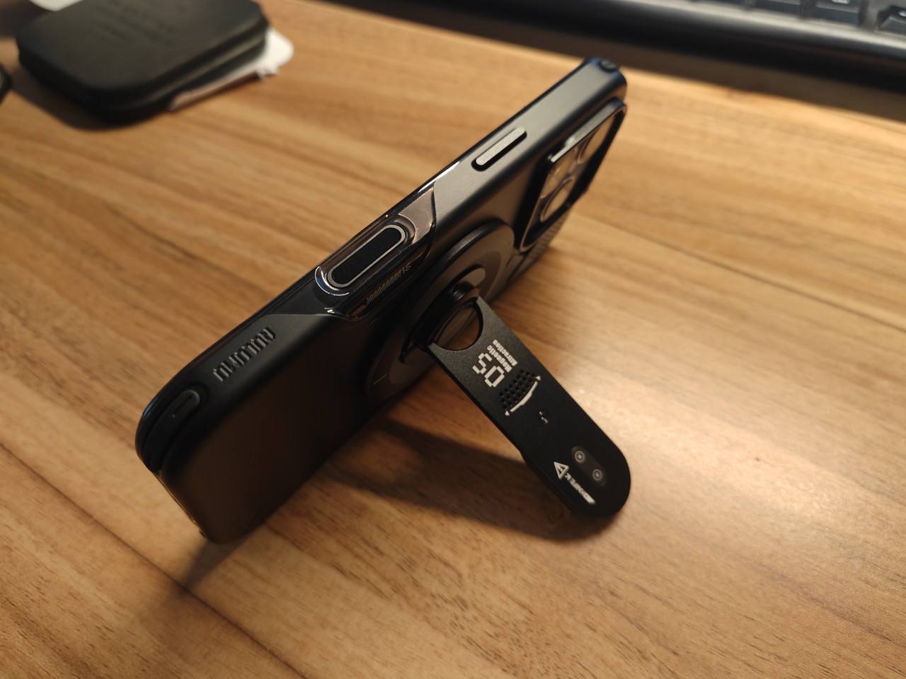 スタンドを装着しても厚みは大きく増さず、スマホの持ちやすさを損ねない点も好印象でした。