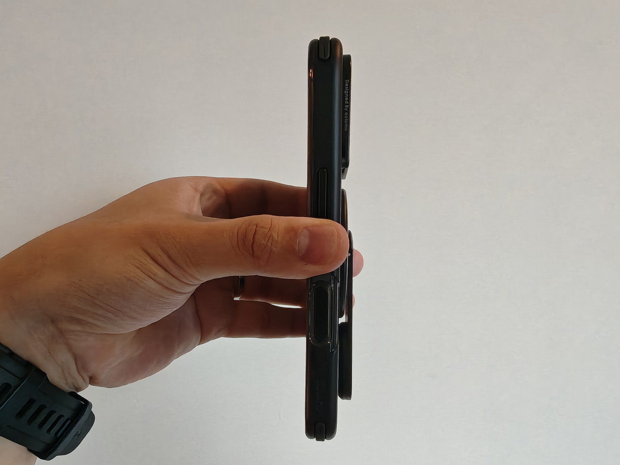 360°回転・90°折りたたみの機構は実にスムーズ。回転時に「カチッ」としたクリック感があり、メカニカルな操作感が気持ちよく、ちょっとしたストレス解消にもなります。