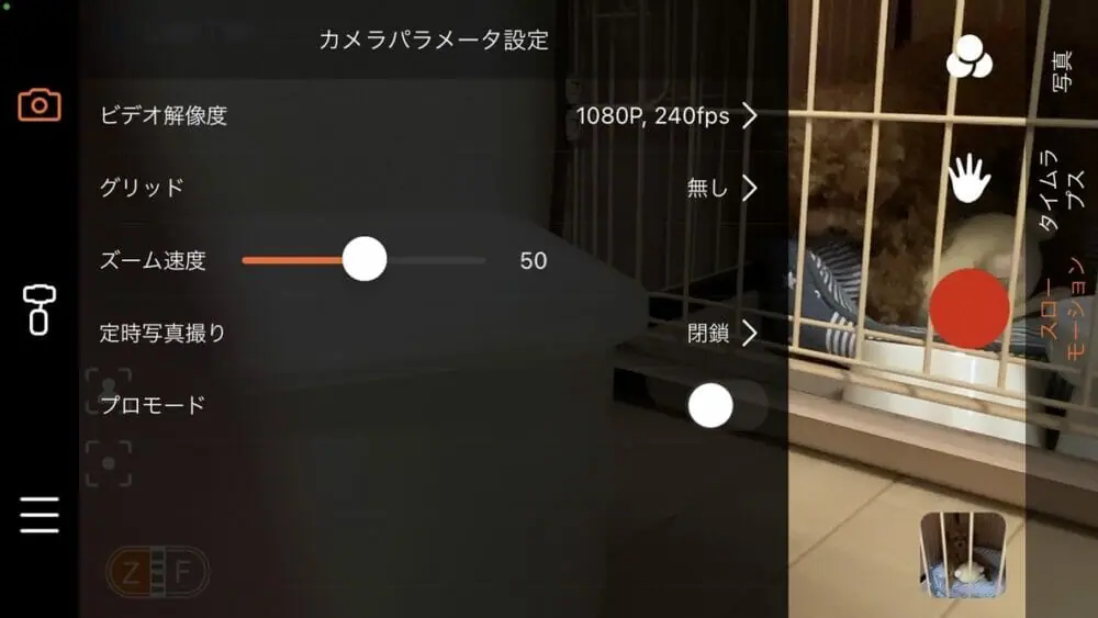 ▼好みに合わせてジンバルのパラーメータ設定を変更することができます。