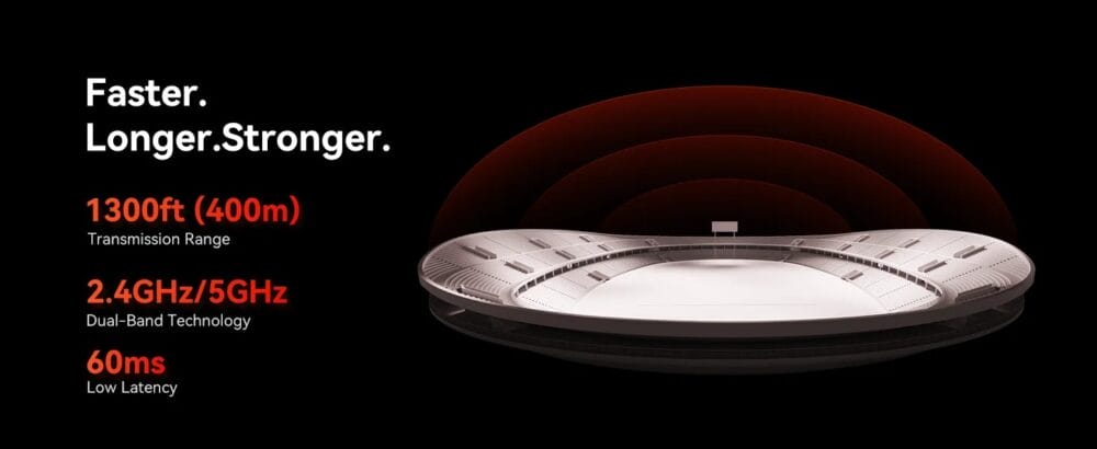 2.4GHz/5GHz デュアルバンド伝送と、自動周波数ホッピング (ADH) テクノロジーを採用しており、1,300 フィート (400 メートル) の広い伝送距離と、わずか 60 ミリ秒という驚異的な低遅延を実現。Pyro 7 は、送信機または受信機として切り替えることができ、1 つの送信機を 4 つの受信機に同時に接続可能。複数のメンバーが同時に映像を確認できるため、作業効率向上にも役立ちます。