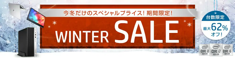 日本HP社(ヒューレットパッカード)のオフィシャルサイトにおいて、一部の対象PCが期間限定で最大62%オフになるウィンターセールが実施されています!