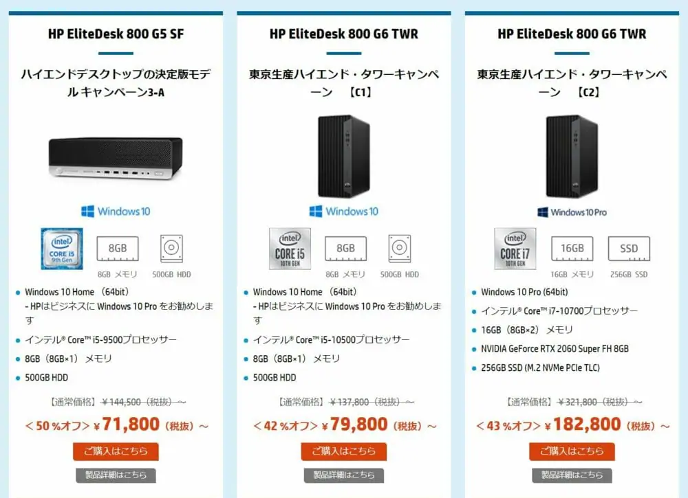 ▼デスクトップPCも割引の対象に。ミドルクラスの業務用PCから、RTXグラフィックボードを搭載したクリエイター&ゲーマー用PCまで、非常にお得な価格で購入することが出来る!