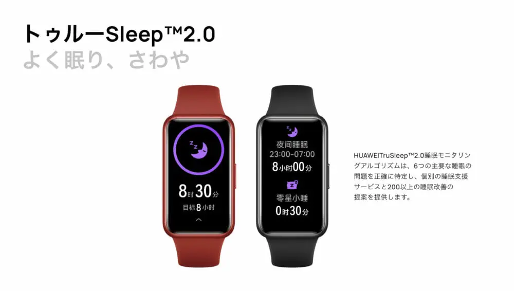 ▼睡眠計測機能はBand6と同じTruSleep2.0が採用されています。