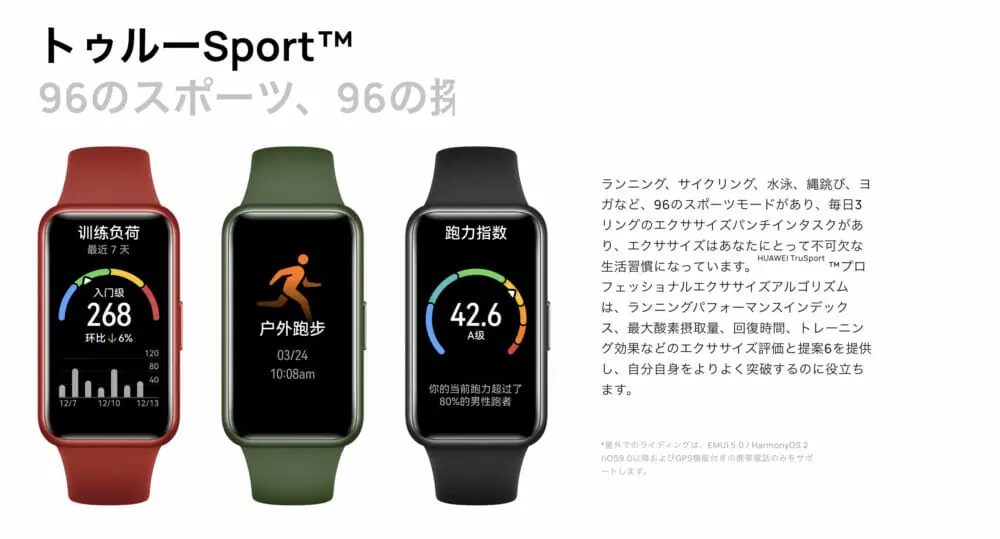 ▼ワークアウト機能はなんと最新ハイエンド機種の「HUAWEI GT Runner」同様の「HUAWEI TruSport」が採用されています。
