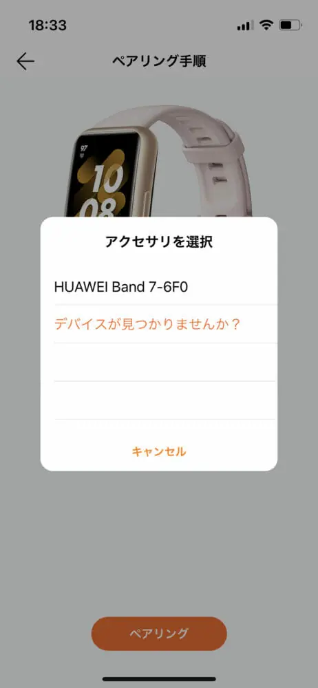 ▼次にペアリングが求められます。ここからHUAWEIの専用アプリとのペアリングが求められます。