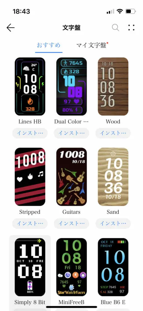 ▼文字盤はアプリ内よりダウンロードできます。豊富な種類があり飽きることはないでしょう。
