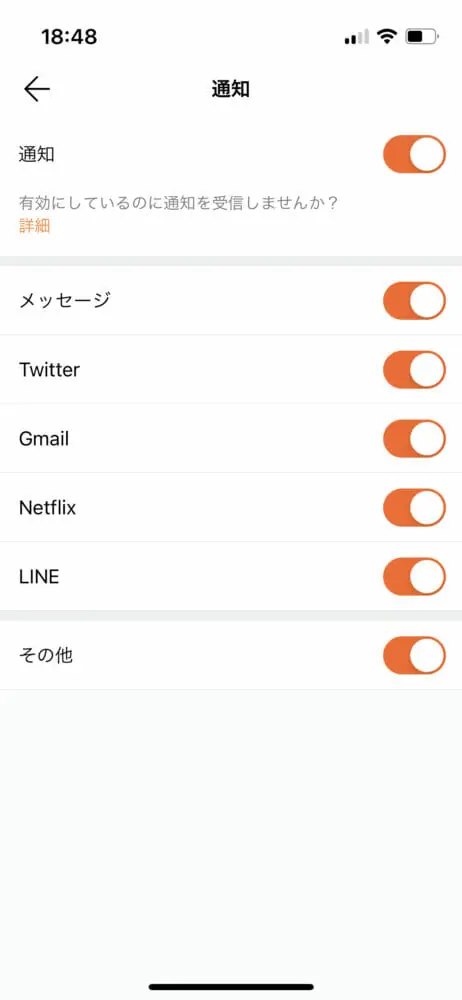 ▼通知機能をオンにすることでスマートウォッチの本領:強力な通知機能を発揮できます。ほぼ全てのアプリの通知に対応しています。