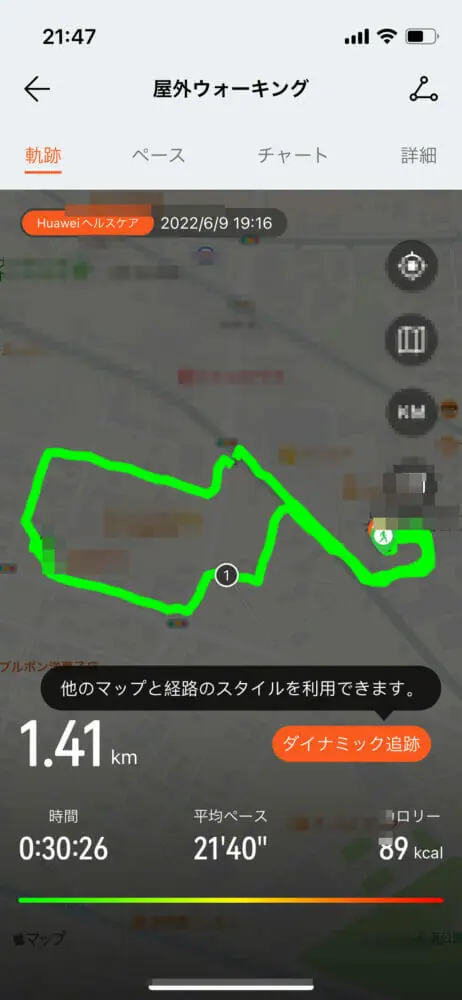 ▼スマホのGPS機能を使いウォーキングやランニングコースを記録することも可能となっています。