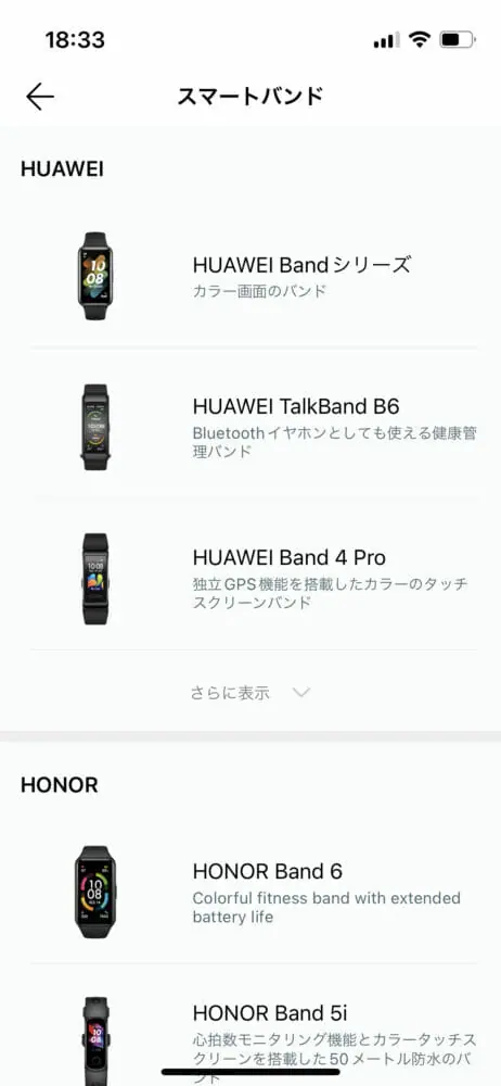 ▼アプリのデバイス追加⇨スマートバンド⇨HUAWEIバンドシリーズと進みます。