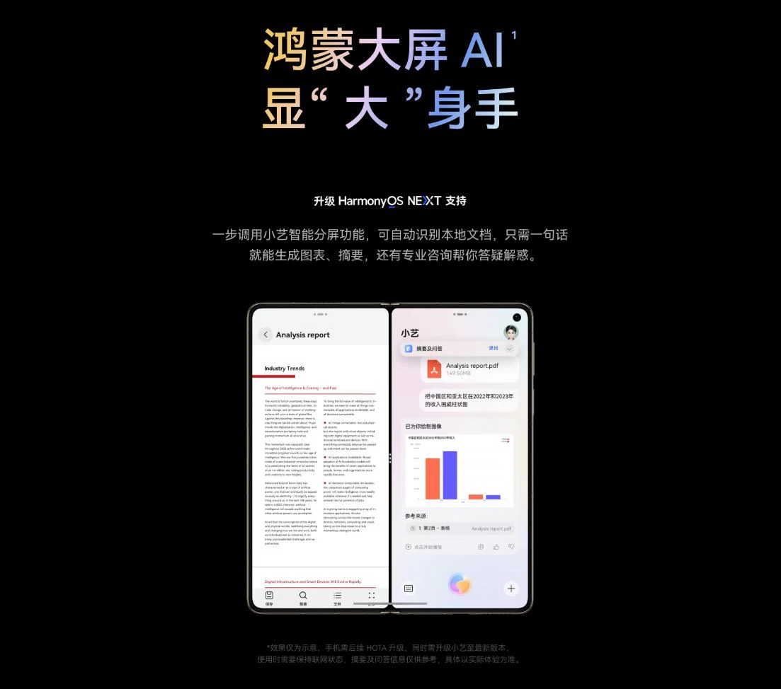 独自OSの「HarmonyOS 4.3」を採用。HarmonyOS NEXTやバリエーション豊かなAI機能が搭載されており、ジェスチャーでデバイスを操作する機能も備わっています。HarmonyOS 5.0へのアップグレードサポート対象。
