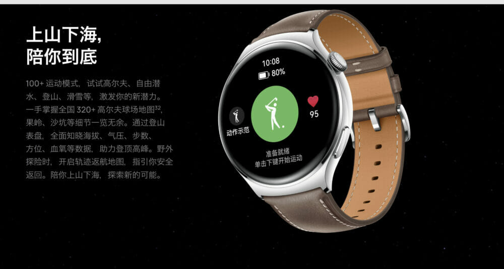 100種類以上のスポーツモードにも対応しています。例えばゴルフ機能は中国国内の32箇所、320以上のゴルフコースを確認でき、ゴルフをする際はチート級の助けとなるでしょう。