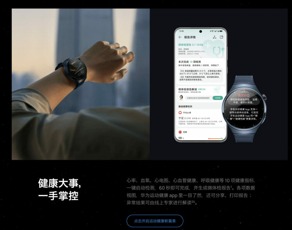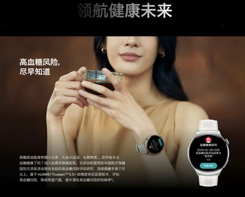 Huawei Watch 4はHUAWEIの洗練された最新技術が結集し、中でも新しいヘルスケア機能「高血糖値測定」や「肺機能評価」が追加されているのが特長となります。