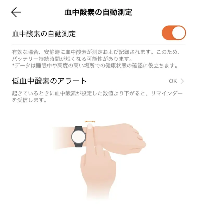 ▼コロナ禍では重要になる、血中酸素濃度の自動測定機能も用意。