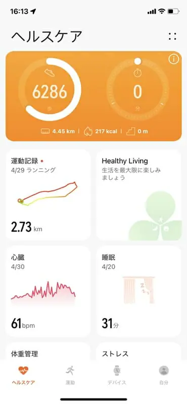 このように、自身がどの程度の運動を行ったかを逐一確認できるようになっている。