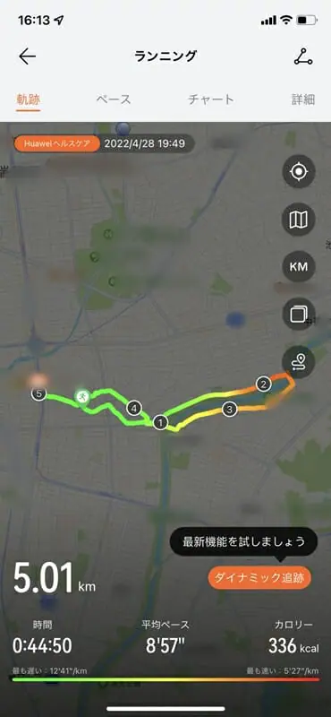 ▼アプリ上では、GPS機能を利用したルートトラッキングや、より詳細なワークアウト情報を確認できる。