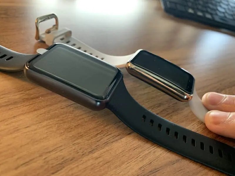 ▼私が以前着用していた『HUAWEI Watch FIT Elegant』(画像左)と並べた様子。