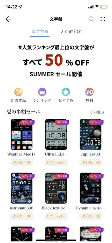 アプリから無料のテーマをインストールすることで、スマートウォッチのホーム画面(時計盤)のデザインを自由に変更することも可能だ。
