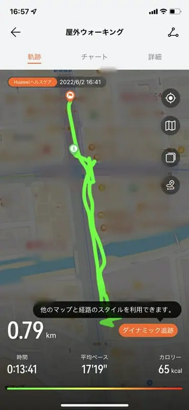 ▼アプリ上では、GPS機能を利用したルートトラッキングや、より詳細なワークアウト情報を確認できる。