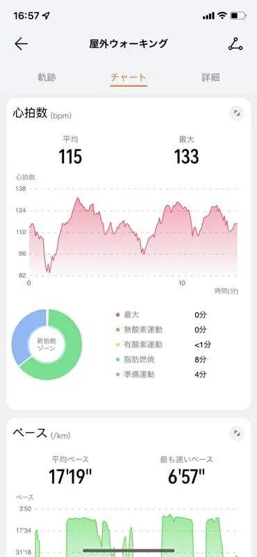 このように、自身がどの程度の運動を行ったかを逐一確認できるようになっている。