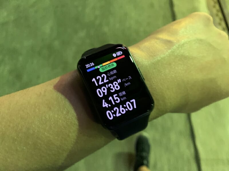 ▼ランニング中の様子。タイム・距離・心拍数・消費カロリーなどをリアルタイムで計測。