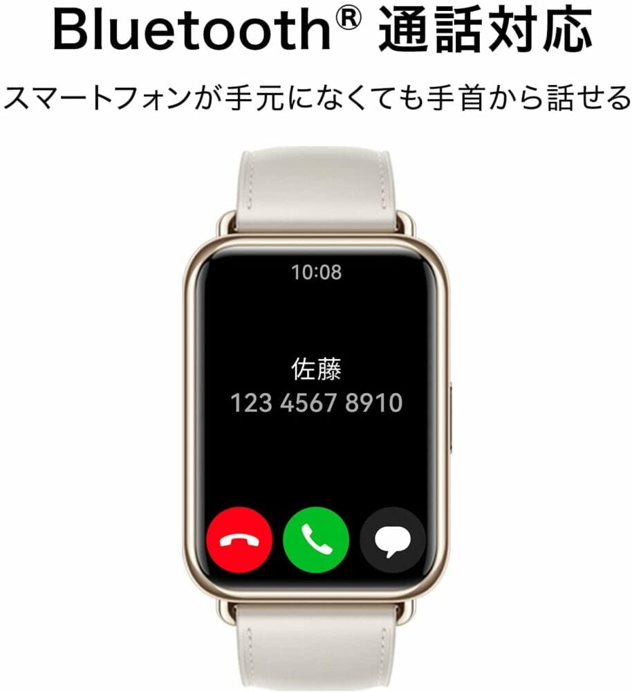 またスマートウォッチにマイクとスピーカーが内蔵されたことで通話機能にも対応しており搭載しており、スマートフォンが手元にない場合でも手首で通話を行うことが可能だ。