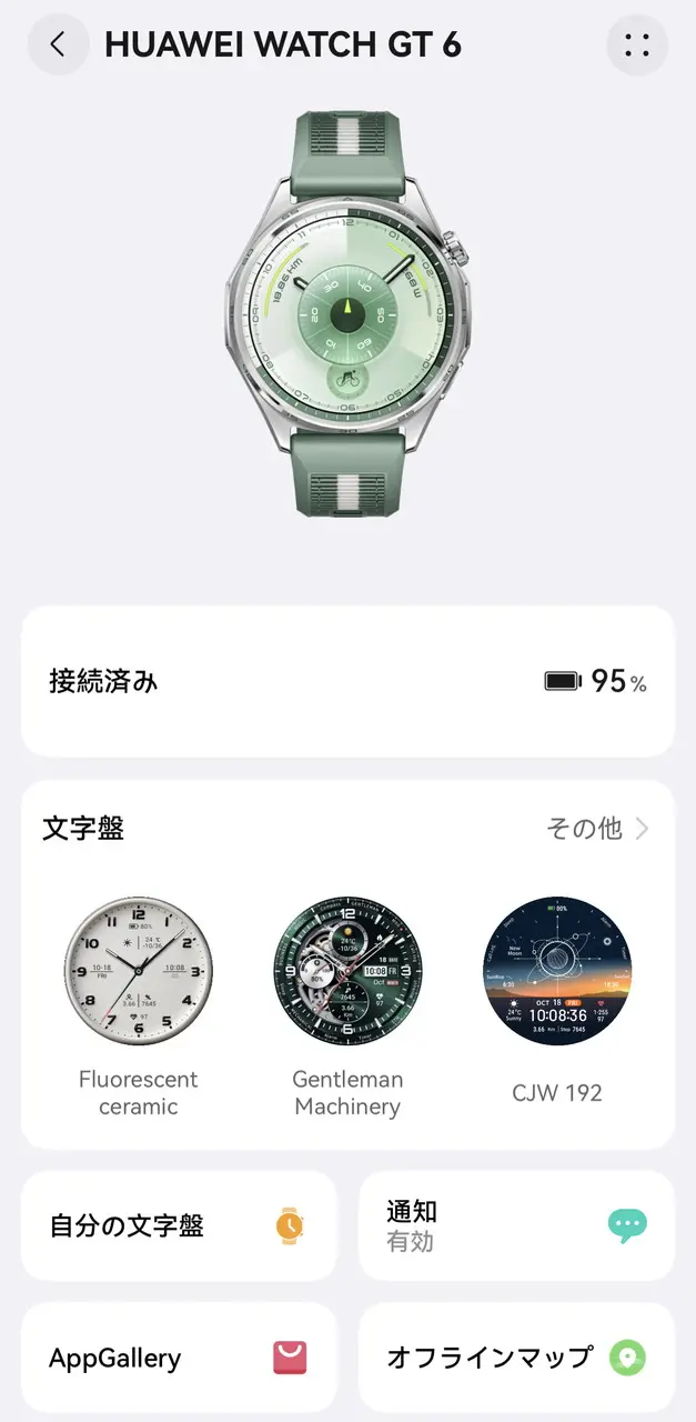 なお、HUAWEI WATCH GT 6はスクリーンショット機能を備えており、回転式クラウンと物理ボタンの同時押しで撮影可能。アプリから許可をオンにすれば、撮影データをスマホのライブラリに直接転送・保存できます。