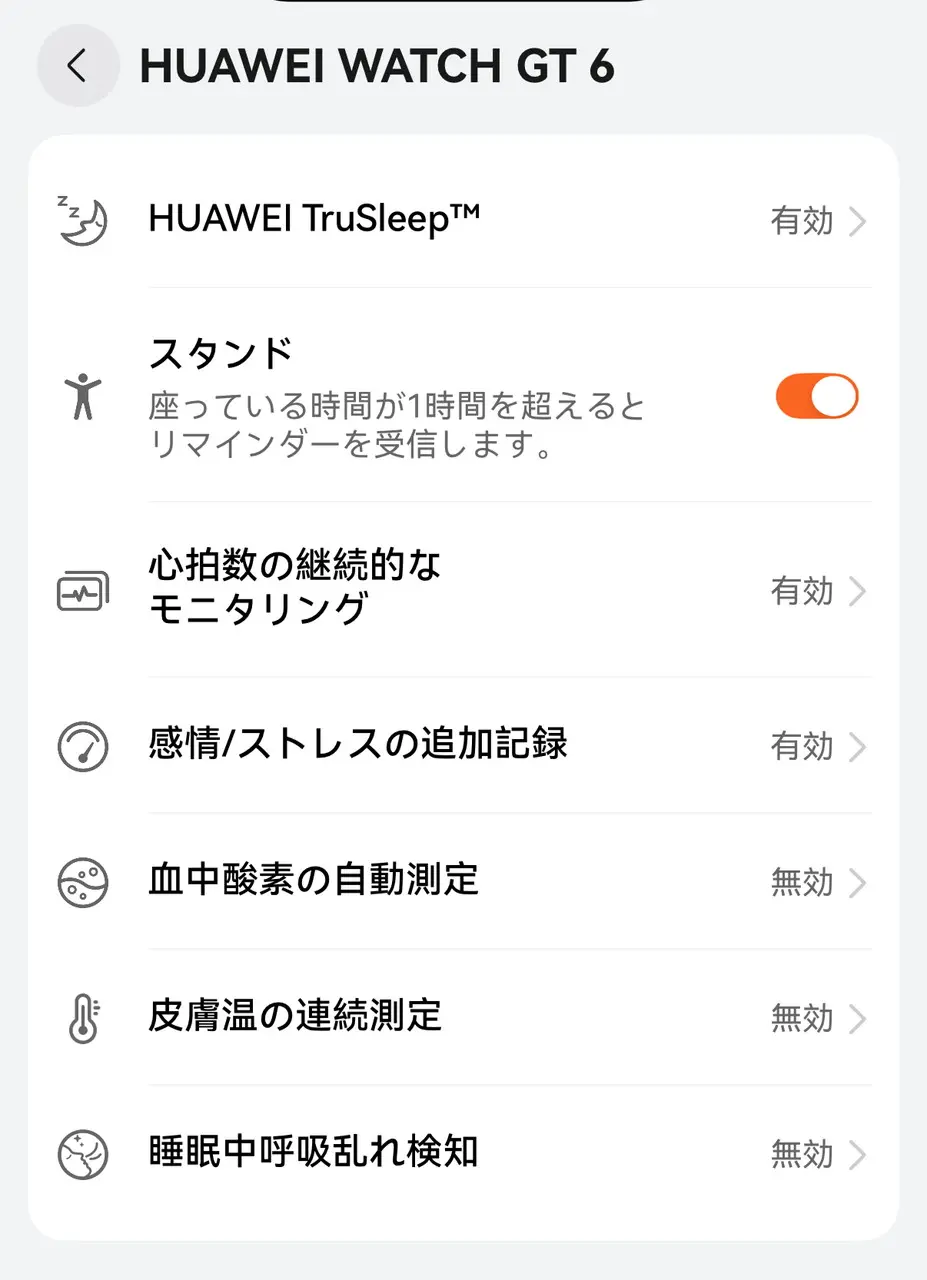 心電図(ECG)やダイビング対応といった高度な機能は上位モデル(GT 6 Pro)にのみ搭載されていますが、GT 6も3万円台のスマートウォッチとしては機能が非常に充実しており、間違いなく高コスパモデルといえます。