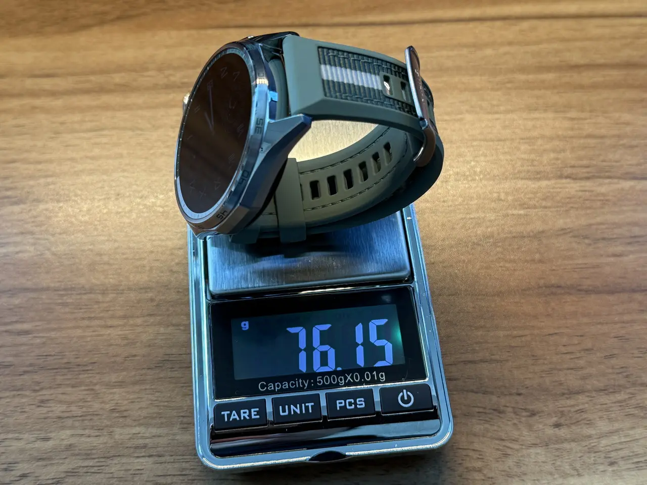 ベルト込みの重量は、実測で約76.15g。十分に軽量な部類です。
