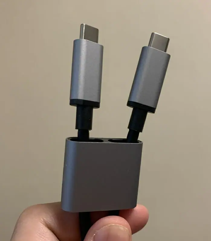 ▼先端からはUSB Type-Cケーブルが2つ伸びている。