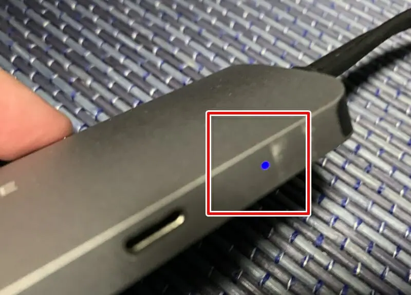ハブがMacBookに認識されると、ハブ本体のランプが青色に点灯する。