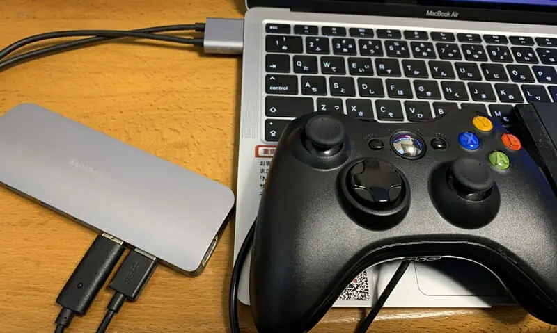 実際にこのハブを経由して、MacBookに対してゲーミングパッド(コントローラ)やDVD・BDプレイヤーを接続してみた。