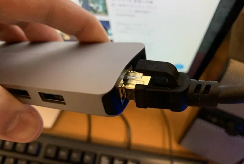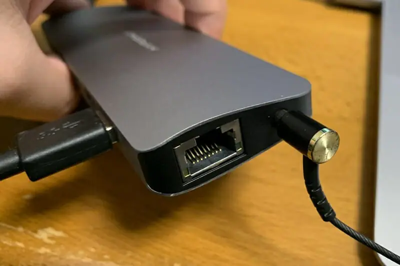 ▼そしてイーサーネット(LAN)ポートも搭載しており、MacBookを有線でインターネット接続できるようになる。