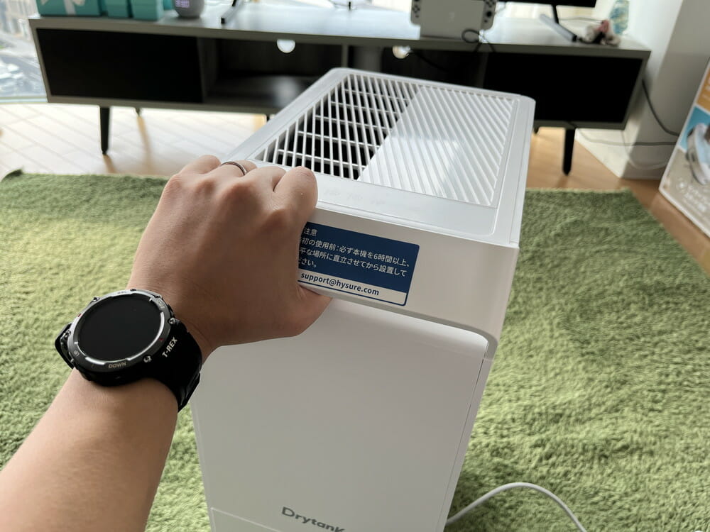 実際に電源コードをコンセントに接続して、Drytank 3000を稼働させてみた。