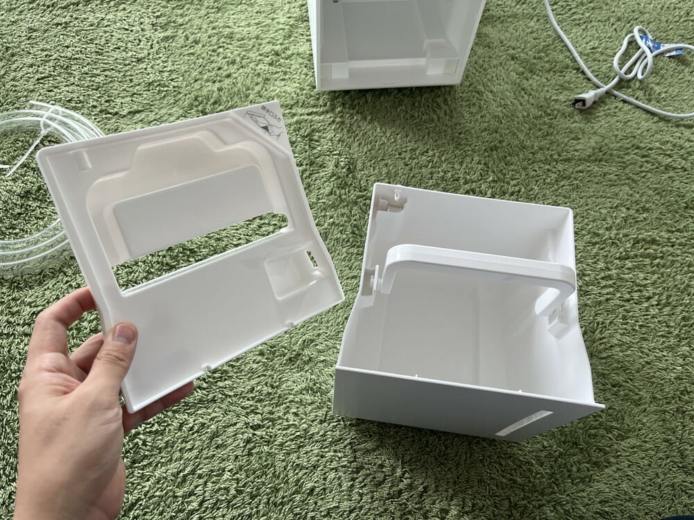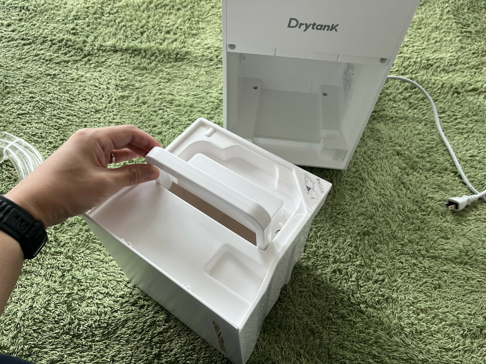 ある程度水が溜まっていることが分かれば、タンク自体を除湿器から取り外して、排水できる。