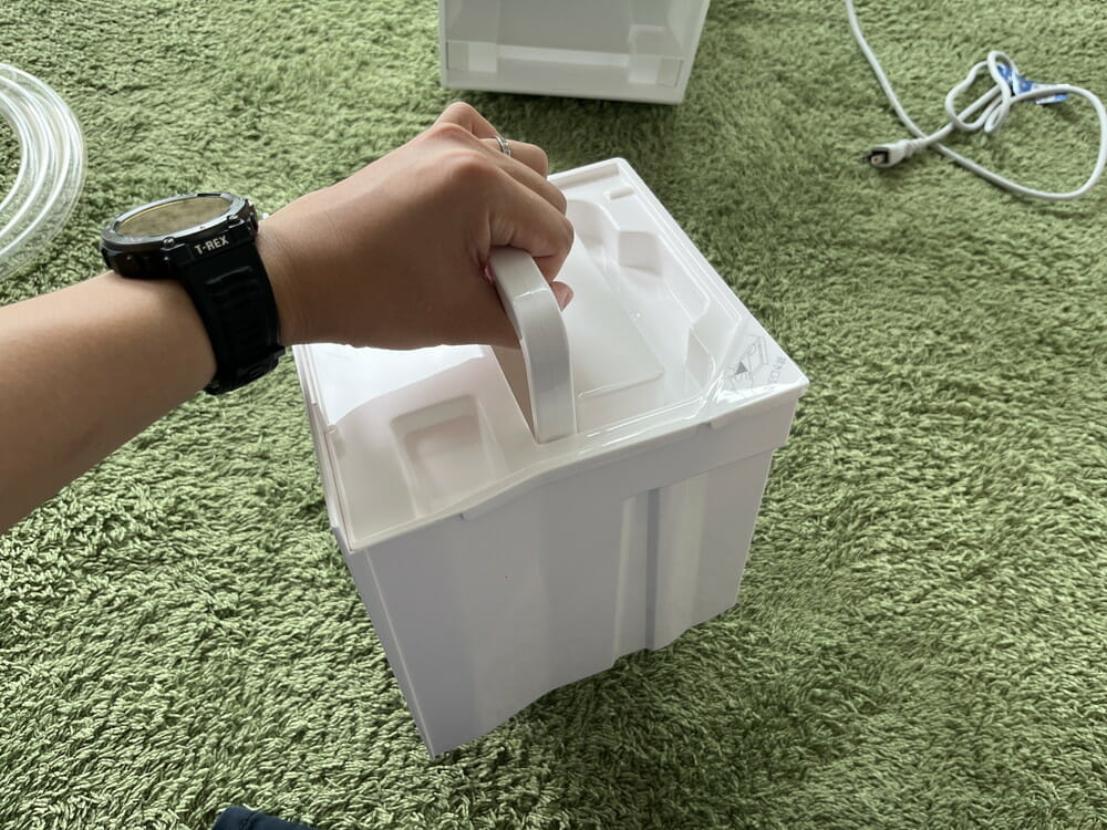 ▼タンクには取っ手が付いており、簡単に持ち運べるようになっている。