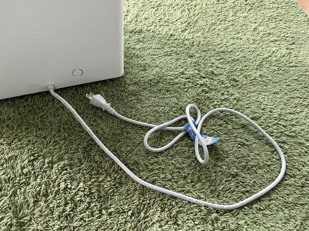 ▼そして下部からは、1.5mの電源コードが伸びている。