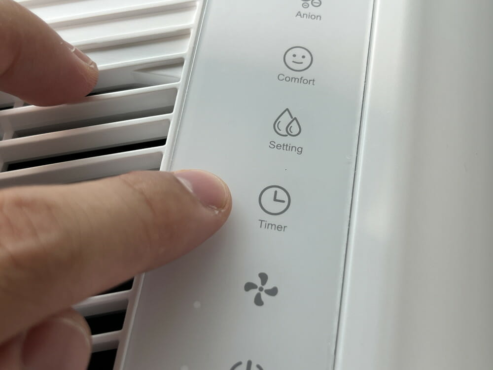 ▼「タイマーボタン」では、オフタイマーを設定することが可能。就寝時や外出時の切り忘れを防止したり、決まった時間だけ稼働させたい場合に役立つ。