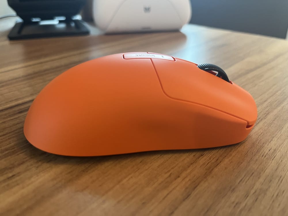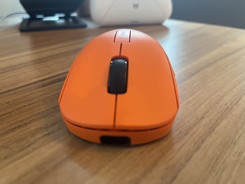▼マウス本体の外観。今回のレビューではオレンジ色を提供していただいた。