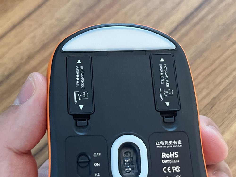 また、ポーリングレートは、底部スイッチを "HZ" に入れた状態で、同様に上部ボタンを押すことで切り替えられる。