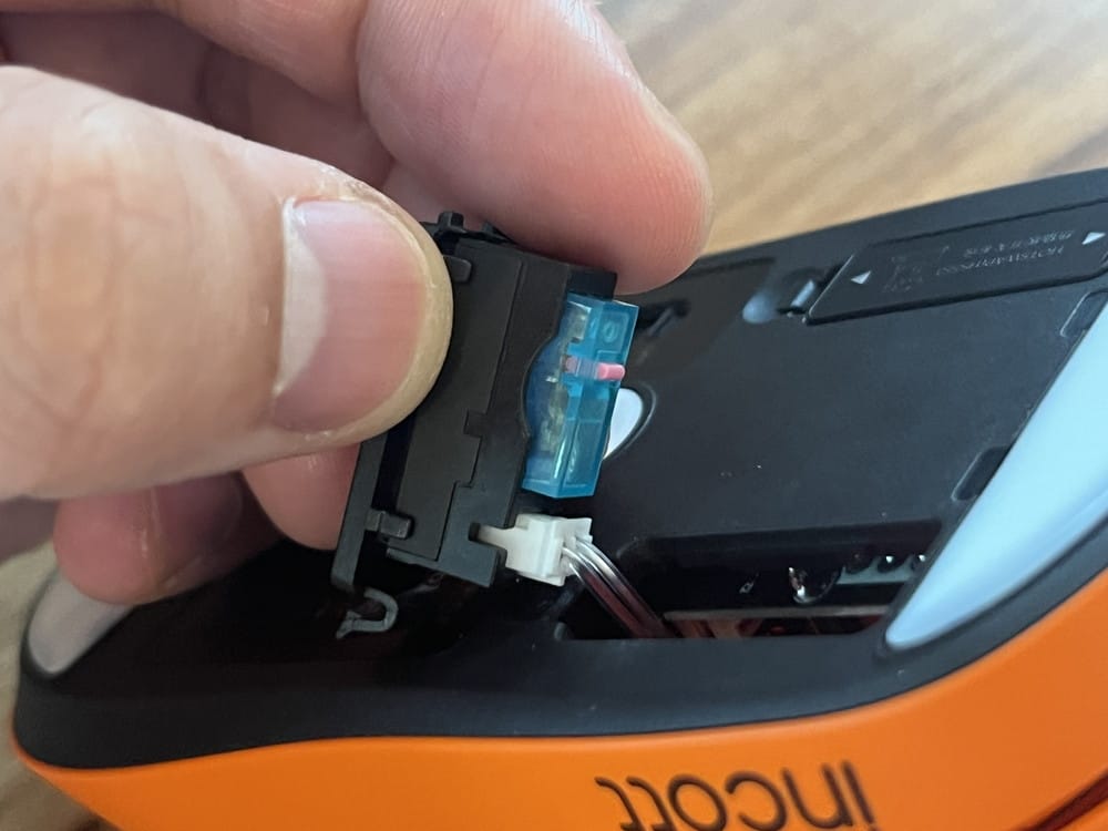 ▼スイッチ交換部を開けて、左クリックスイッチと右クリックスイッチを簡単に交換できる。
